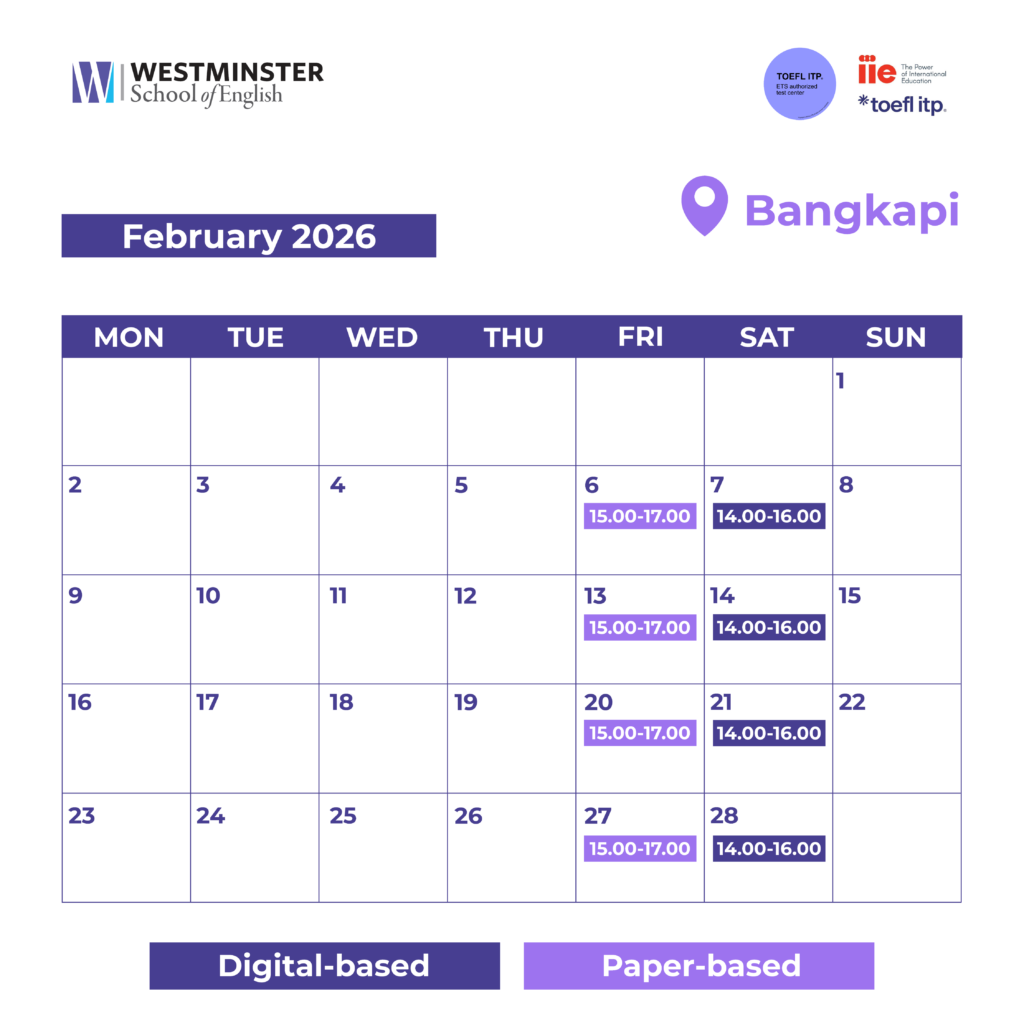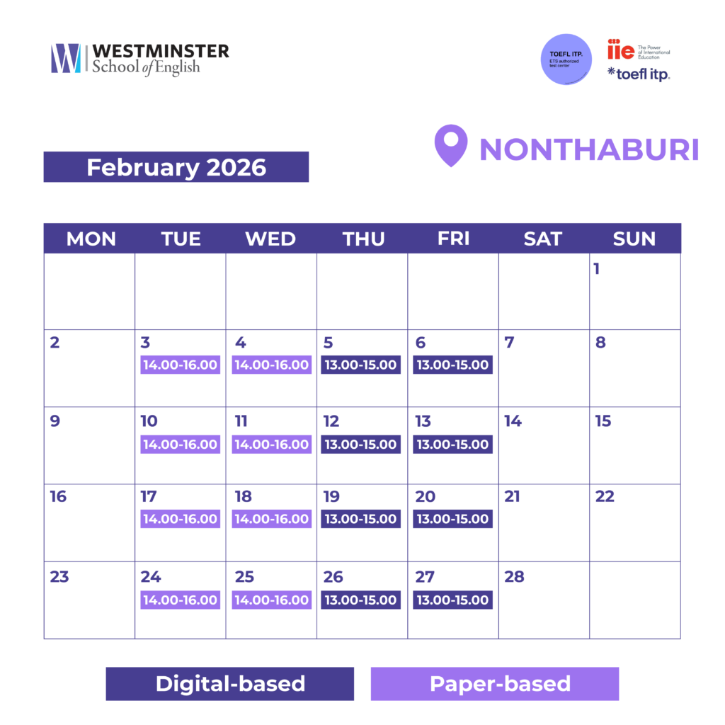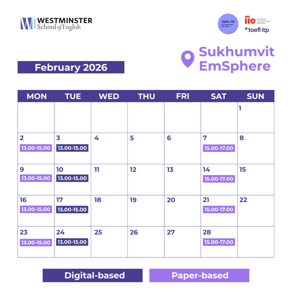 For special test sessions with 12 or more candidates, please contact 099-325-0483 or LINE @toeflwestminster